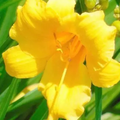 Цветение лилейника происходит в июле и августе, и этот процесс может радовать глаз в течение длительного времени. Цветы имеют простую форму и небольшие размеры, диаметром 5-8 см. Однако каждый цветок удивляет своей яркой желтой окраской, которая придает садам неповторимый шарм и солнечное настроение. Зеленое горло и приятный сильный аромат делают каждый цветок особенным.