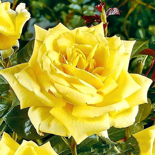 Цветок розы Ландора отличается насыщенной желтой окраской как бутона, так и цветка. Они имеют овальную, заостренную форму, которая придает им неповторимую элегантность. Диаметр цветка составляет 9-11 см, а количество лепестков варьируется от 25 до 40. Широкий спектр оттенков и свежая желтая окраска делают эту розу незаменимой для срезки.