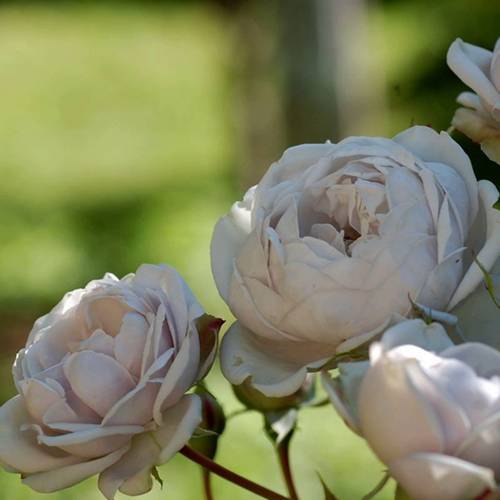 Цветение розы Гризелис — это настоящее зрелище. Цветки этой розы имеют средний размер и достигают диаметра 7-8 см. При посадке в полутень вас удивит серая окраска, в то время как на солнечных участках цветы будут проявлять нежный розовый цвет. Тип цветка — густомахровый, что придает ему дополнительную объемность и красоту. Цветки располагаются в соцветиях по 3-5 штук на одном стебле, создавая великолепные виды.