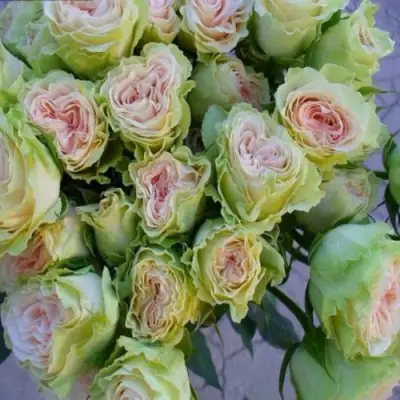 Основное достоинство сорта — удивительный цветок. Бутоны округлой формы, средней величины (диаметром 5–7 см), распускаются в изысканные цветки с двухцветной окраской. Основной тон — розовый, дополненный зелёными внешними лепестками, придающими цветку выразительность и нотку экзотики. Этот уникальный цветовой переход делает каждое соцветие особенным и легко узнаваемым в любом цветнике. Цветок среднемахровый, содержит от 27 до 40 лепестков. Аромат приятный и тонкий, ненавязчивый — идеально подходит для размещения рядом с зонами отдыха.