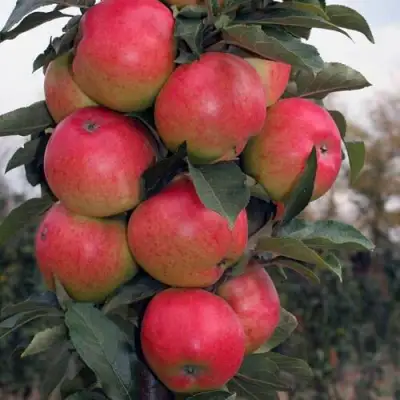 Саженцы яблони колонновидной Элита B - это отличное решение для тех, кто хочет иметь на своем участке компактное деревце с вкусными и сочными плодами. Этот сорт отличается невысоким ростом до 3,5 метров, компактной кроной и короткими боковыми побегами. Созревшие плоды имеют бордовый цвет с небольшими участками зеленого, весом до 200 грамм.